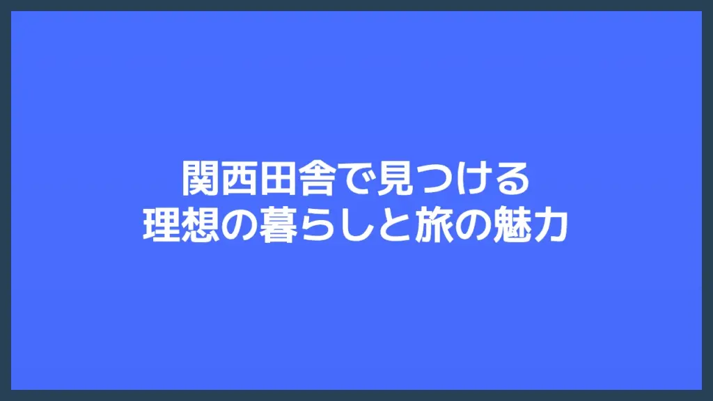 関西田舎で見つける理想の暮らしと旅の魅力