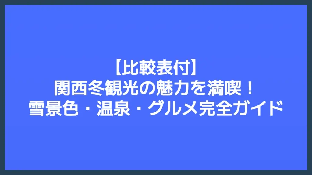 【比較表付】関西冬観光の魅力を満喫!雪景色・温泉・グルメ完全ガイド